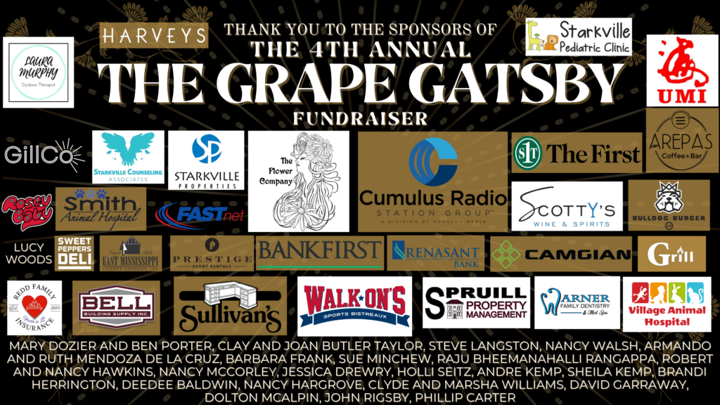 The Grape Gatsby is a prohibition speakeasy themed fundraising event to be held at the Starkville Public Library on May 16, 2026 at 6:30 pm. There will be wine, food from local restaurants, and live music.